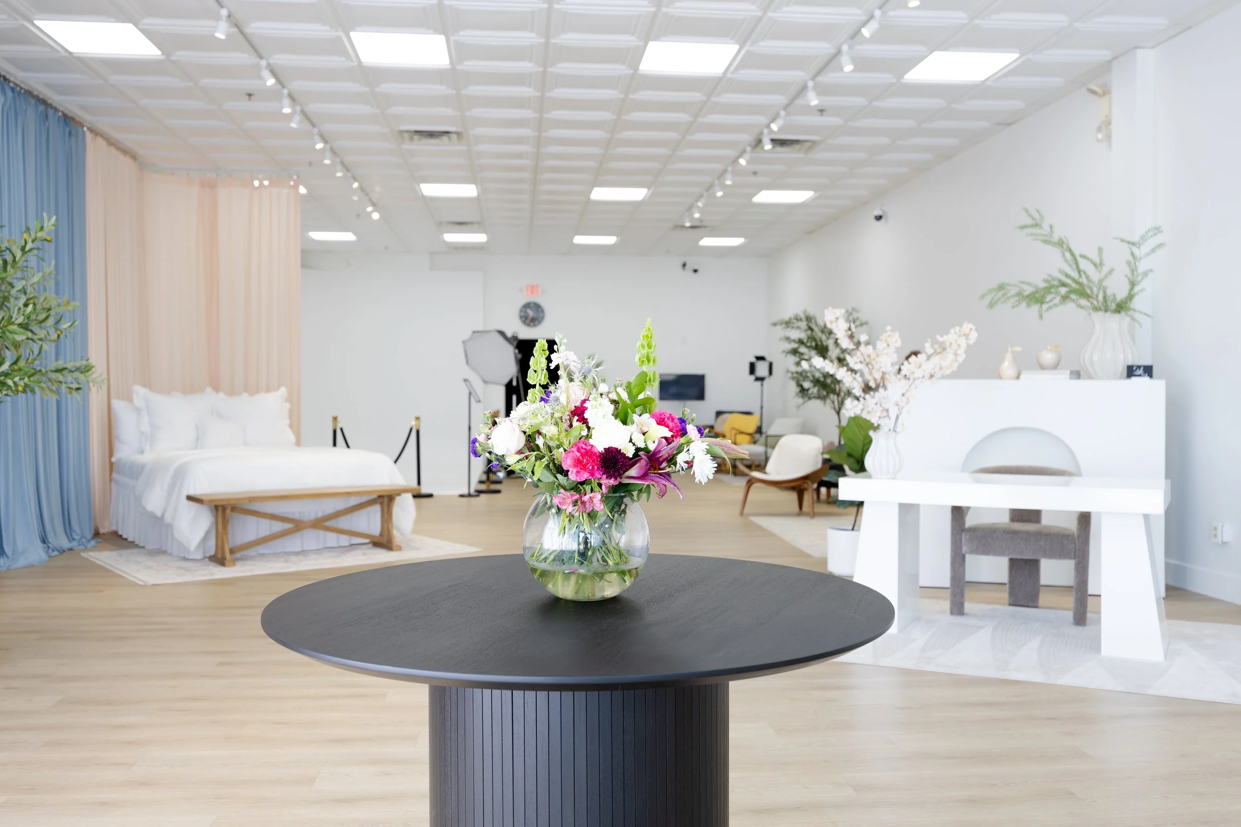 A flexible creative space for photoshoots, podcasts, events, workshops, and more- available by the hour or day.